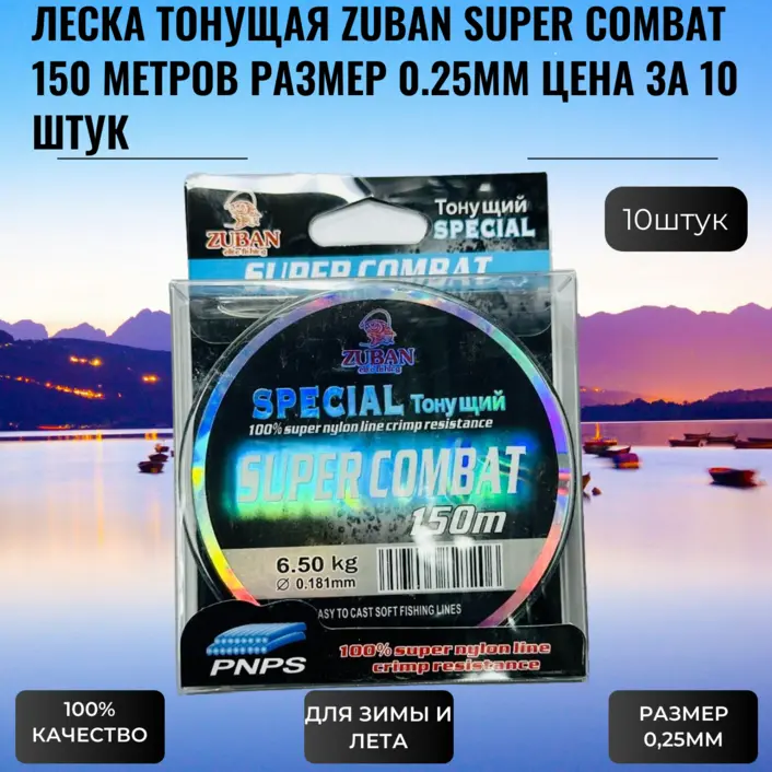 ЛЕСКА ТОНУЩАЯ ZUBAN SUPER COMBAT 150 МЕТРОВ РАЗМЕР 0.25ММ 10 ШТУК. ЦЕНА ЗА 10 ШТУК