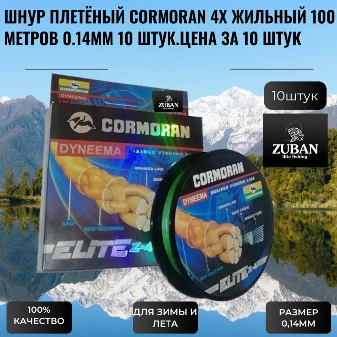 Шнур плетёный (Плетёнка) CORMORAN 4Х жильный длина 100 метров,диаметр 0,14мм 10 штук.Цена за 10 штук