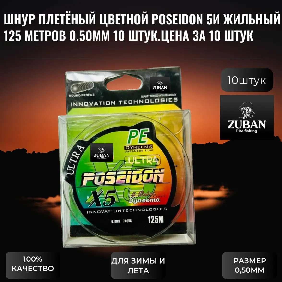 Шнур плетёный (Плетёнка) цветной POSEIDON 5И жильный длина 125 метров,диаметр 0,50мм 10 штук.Цена за 10 штук