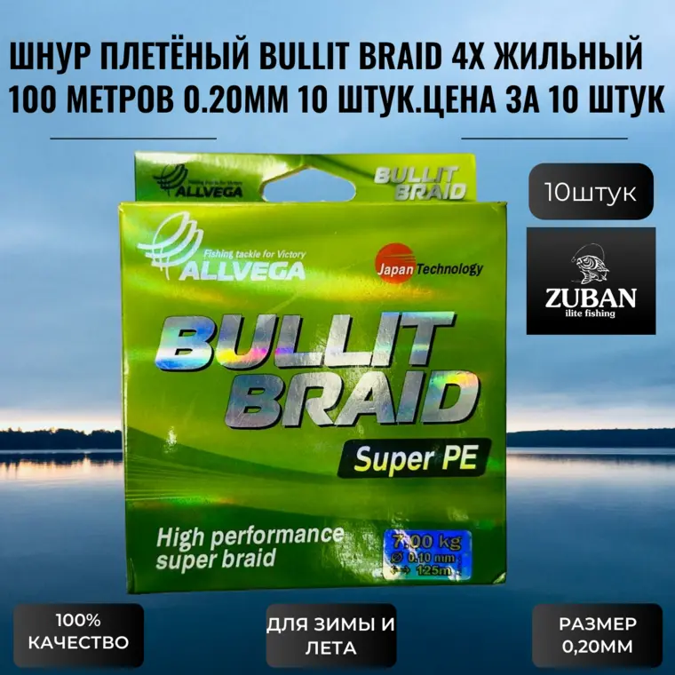 Шнур плетёный (Плетёнка) BULLIT BRAID 4Х жильный длина 100 метров,диаметр 0,20мм 10 штук.Цена за 10 штук