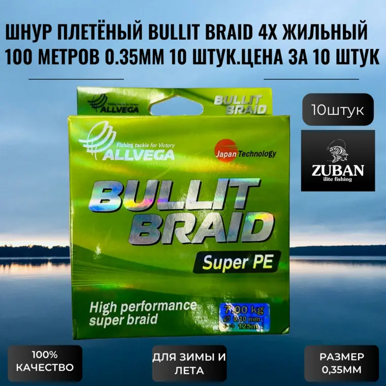 Шнур плетёный (Плетёнка) BULLIT BRAID 4Х жильный длина 100 метров,диаметр 0,35мм 10 штук.Цена за 10 штук