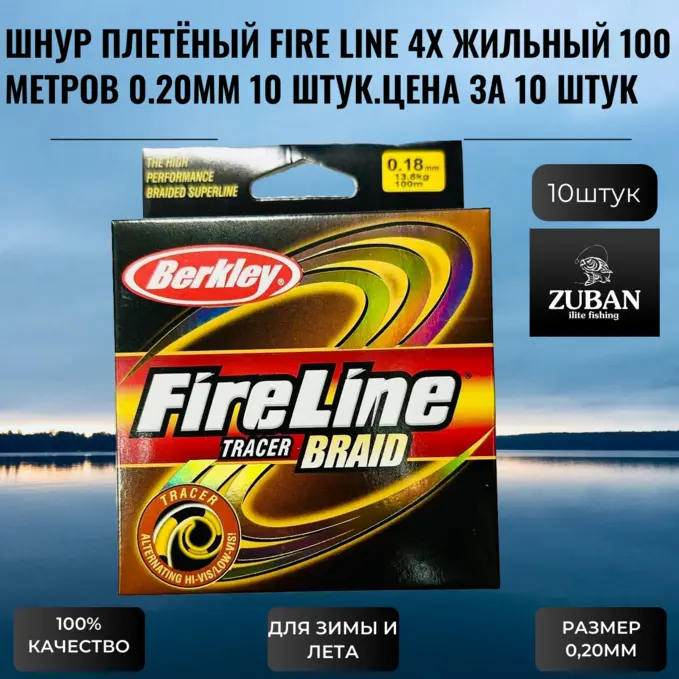 Шнур плетёный (Плетёнка) FIRE LINE 4Х жильный длина 100 метров,диаметр 0,20мм 10 штук.Цена за 10 штук