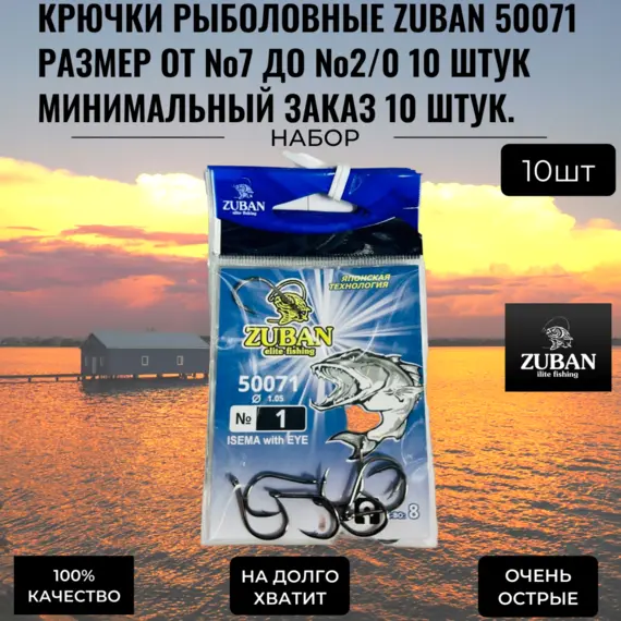 Крючки рыболовные ZUBAN 50071 размер от №7 до №2/0.Минимальный заказ 10 пачек одного размера.Цена за 10 пачек