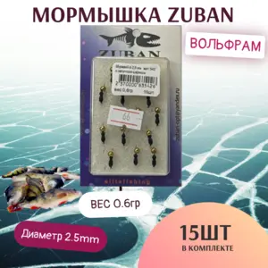 Мормышки вольфрамовые ZUBAN длина 2.5 миллиметра 15 штук