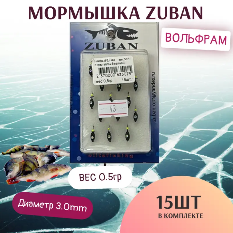 Мормышки вольфрамовые ZUBAN длина 3.0 миллиметра 15 штук
