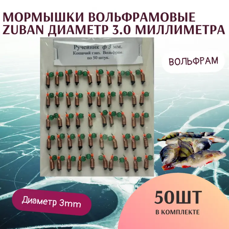 Мормышки вольфрамовые ZUBAN диаметр 3.0 миллиметра 50 штук