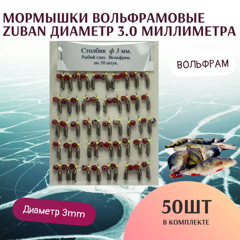 Мормышки вольфрамовые ZUBAN диаметр 3.0 миллиметра 50 штук