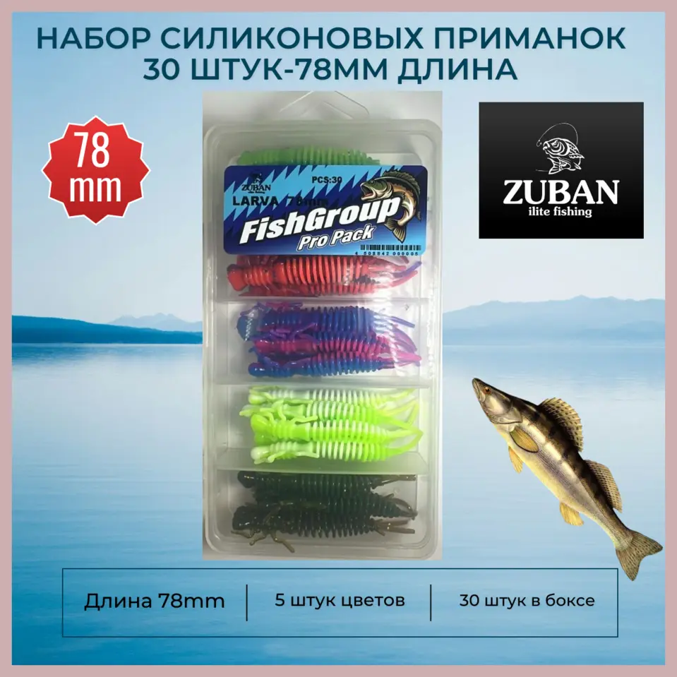 Набор силиконовых приманок ZUBAN 30 штук-78mm