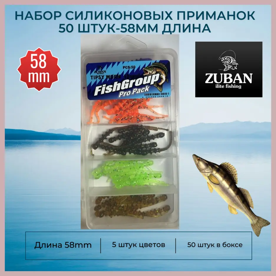 Набор силиконовых приманок ZUBAN 50 штук-58mm