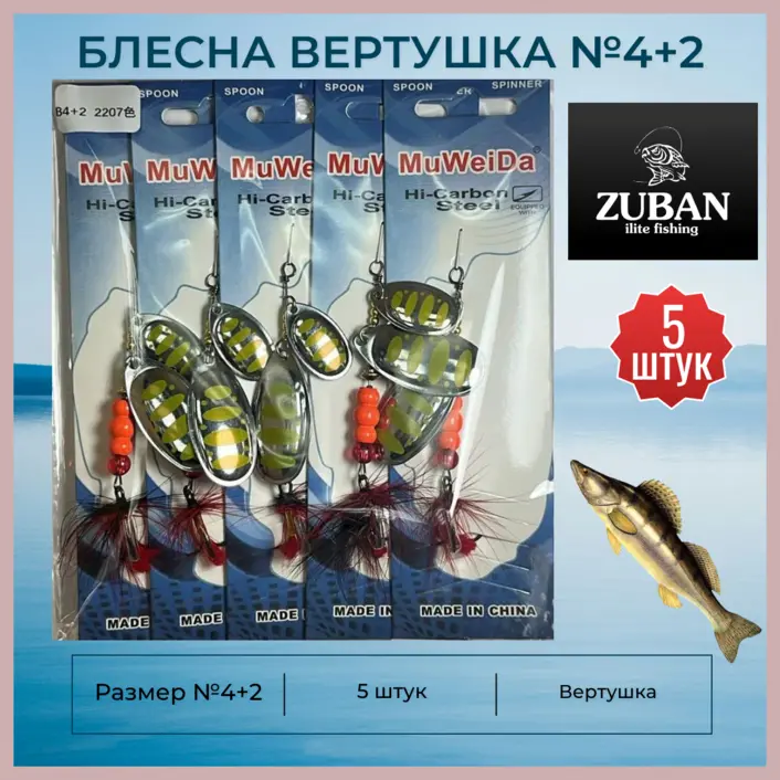 Блесна вертушка ZUBAN 5 штук №4+2