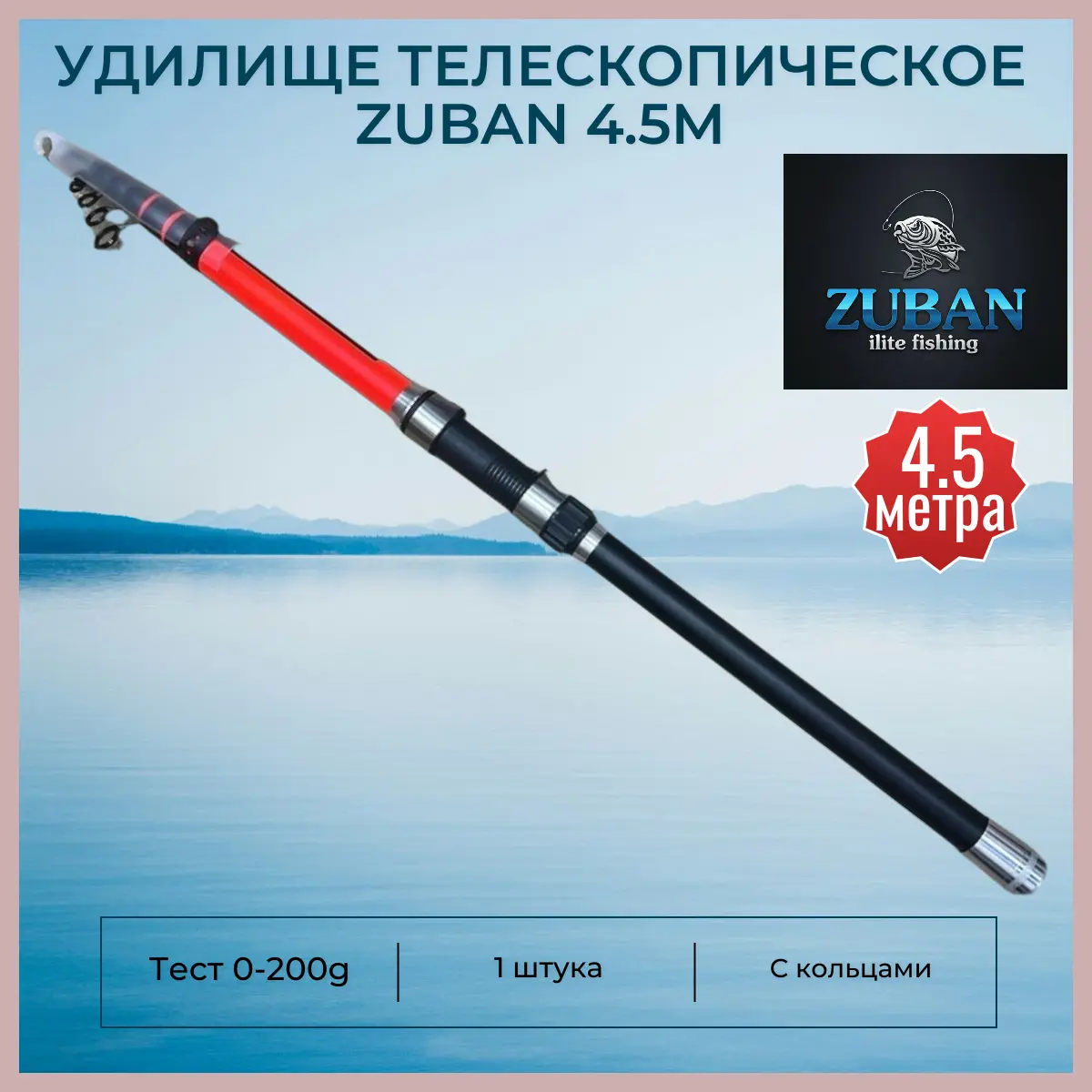 Удилище Телескопическое ZUBAN -4.5 метра тест 0-200 грамм