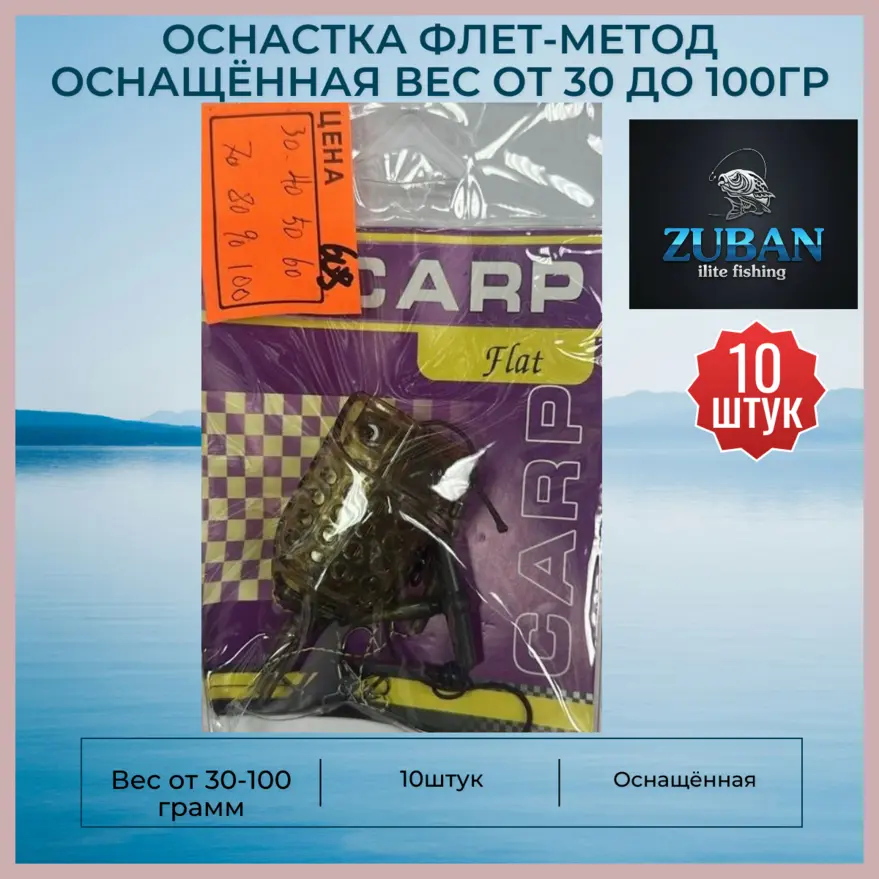 Оснастка Флет-метод оснащённая ZUBAN 10 штук вес от 30 до 100 грамм