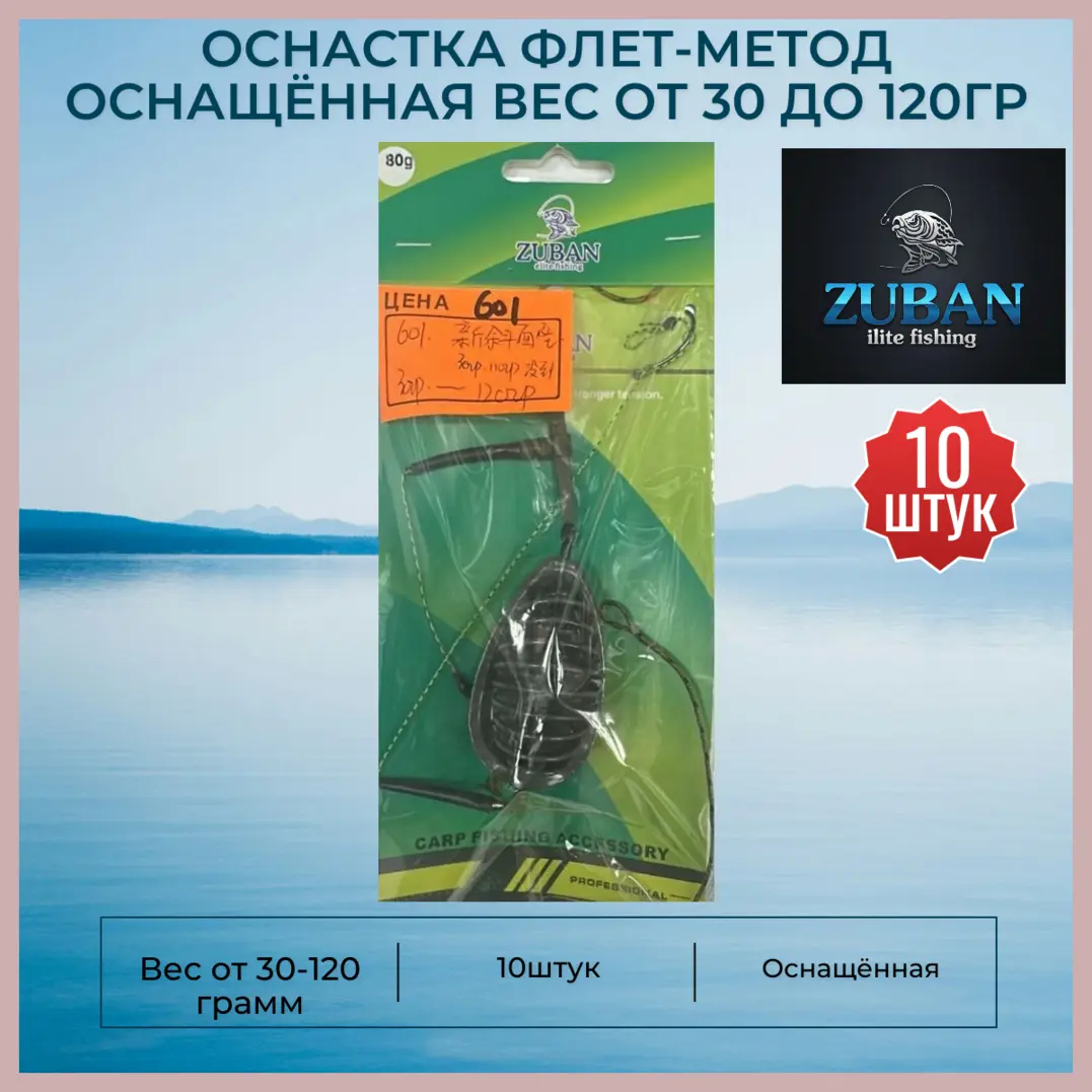 Оснастка Флет-метод оснащённая ZUBAN 10 штук вес от 30 до 120 грамм