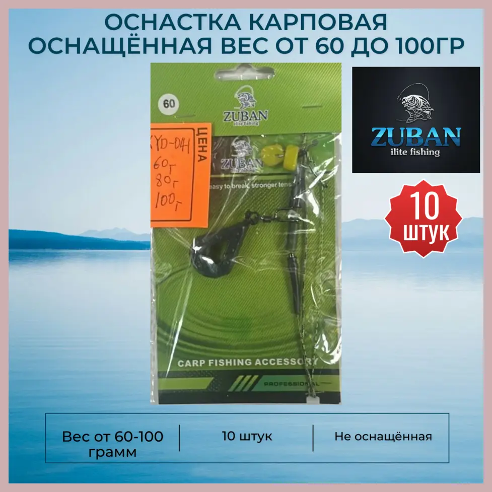 Оснастка карповая оснащённая ZUBAN 10 штук вес от 60 до 100 грамм